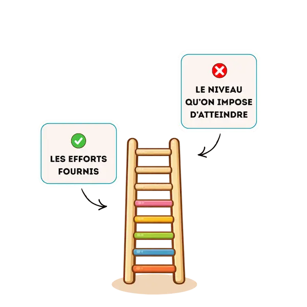 Un élève peut ne pas atteindre immédiatement le niveau imposé alors qu’il a pourtant déjà franchi de nombreuses étapes.